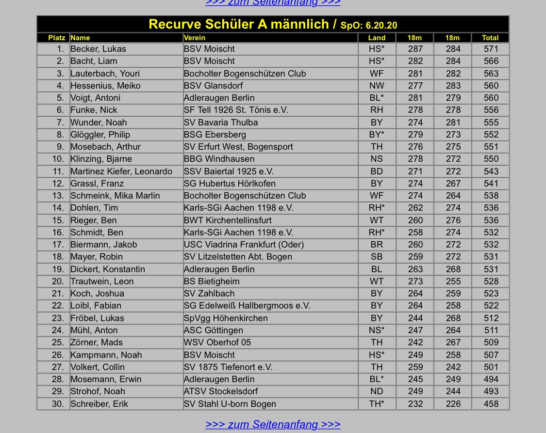 Ergebnistafel 2026 Deutsche Meisterschaft Bogen Halle